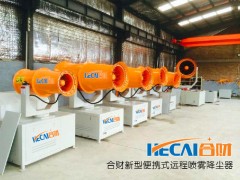 目前,合財(cái)風(fēng)送射霧降塵器在除臭方面已經(jīng)取得了很好的進(jìn)展,效果比較理想,值得推廣應(yīng)用。通過環(huán)保降塵風(fēng)送式噴霧機(jī)產(chǎn)生水霧綜合治理惡臭粉塵污染,噴霧的射程可以達(dá)到60米至150米,經(jīng)研究實(shí)驗(yàn)表明,水霧除塵對150微米級以下粉塵具有完全抑制能力,抑塵后滿足國家粉塵排放標(biāo)準(zhǔn)(PM10)。且水霧是通過結(jié)合粉塵后沉降,不會造成地面積水,物料表面含水率也僅增加0.3%左右。該方法較之傳統(tǒng)的噴管灑水防塵、煤炭注水防塵、灑水車對路面灑水濕潤防塵等方法,具有無可比擬的優(yōu)勢。